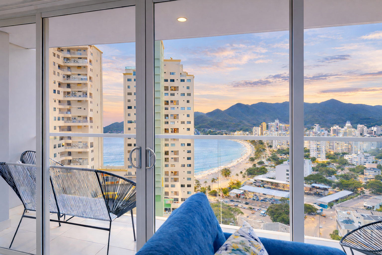 Diseñado para ofrecer una experiencia tranquila y placentera, es el lugar perfecto para compartir en familia o en parejas. Desde el balcón, podrás deleitarte con una vista panorámica al mar y al sector del Rodadero, ideal para relajarte y disfrutar de los atardeceres caribeños.